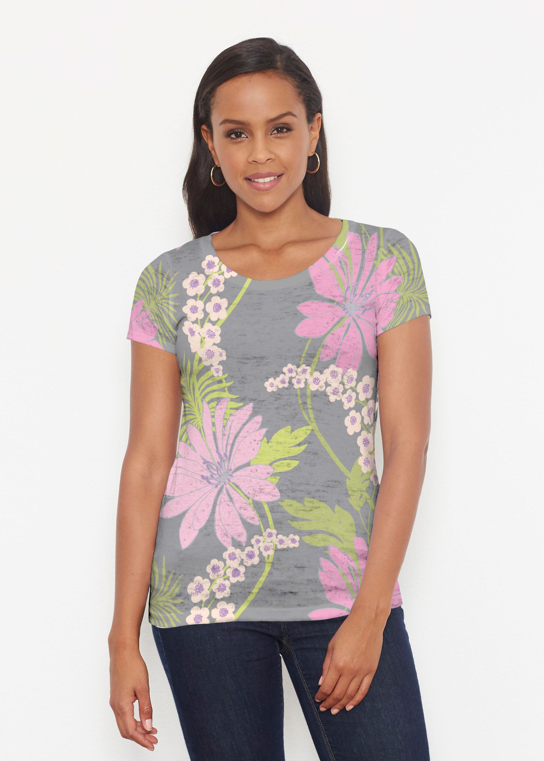 Our scoop neck tee in our casual and supremely soft Signature burnout blend is a best-selling collectible! A relaxed fit falls at the hip.