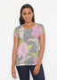 Soft pinks and greens beautifully intertwine, capturing the essence of island flora. A tranquil and feminine ensemble that evokes a sense of tropical paradise.