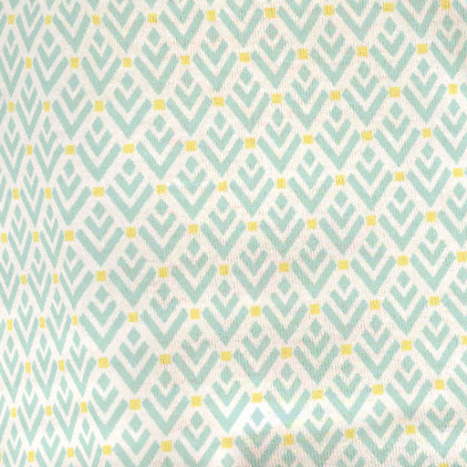 An attractive combination of yellow and minty turquoise geo prints with a floral surprise of color on the back.