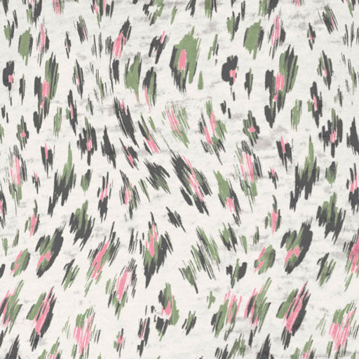 Delightfully fresh abstract leopard print in pinks, olives and charcoal by Susan Werner.
