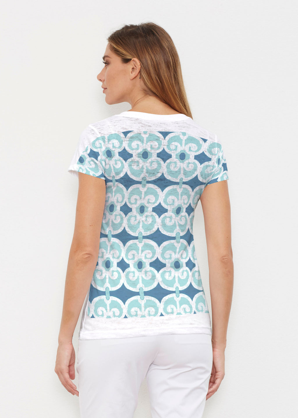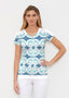 Links Navy Aqua (8133) ~ Signature Cap Sleeve V-Neck Shirt