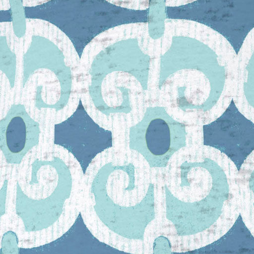 A captivating abstract chain link print design in varying shades of aqua and dark blue. The juxtaposition of the vibrant aqua against the deep dark blue adds a touch of whimsy and playfulness to the design.
