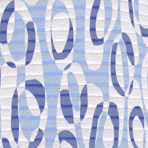 A fun geometrical pattern of overlapping whimsical loops of navy, light blue and white.