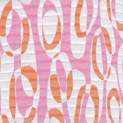 A fun geometrical pattern of overlapping whimsical loops of hot pink, orange and white.