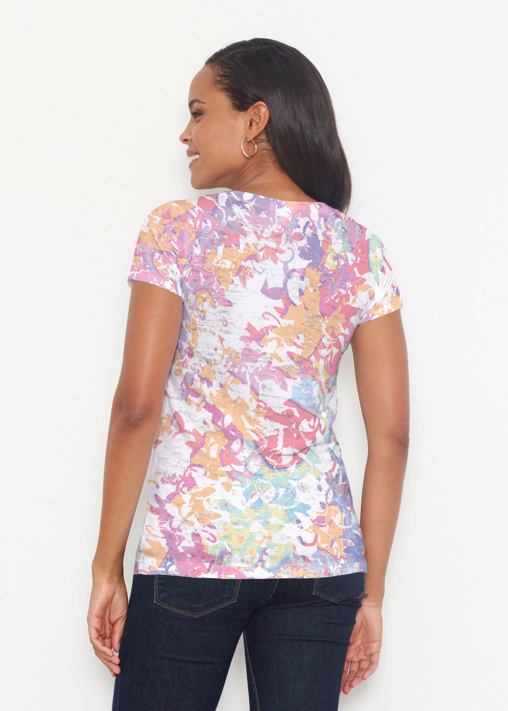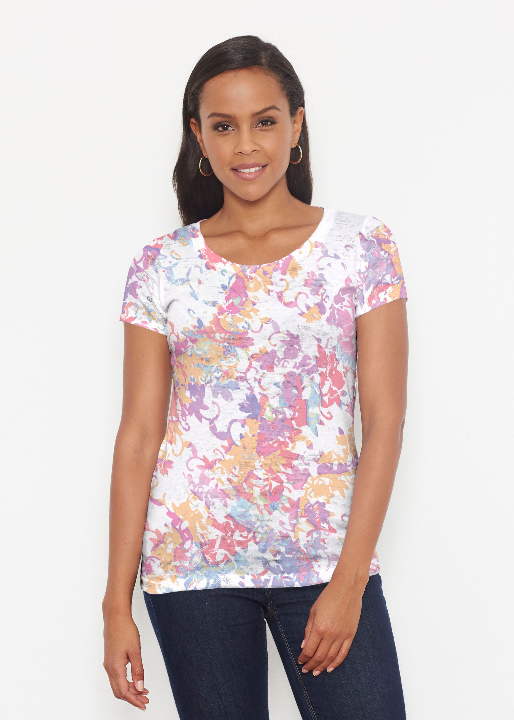 Our scoop neck tee in our casual and supremely soft Signature burnout blend is a best-selling collectible! A relaxed fit falls at the hip.