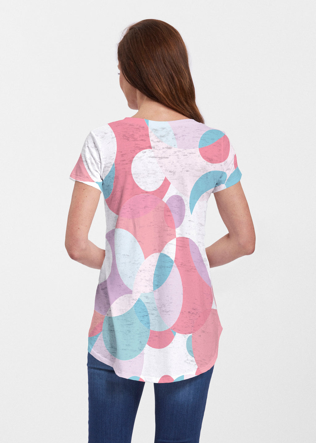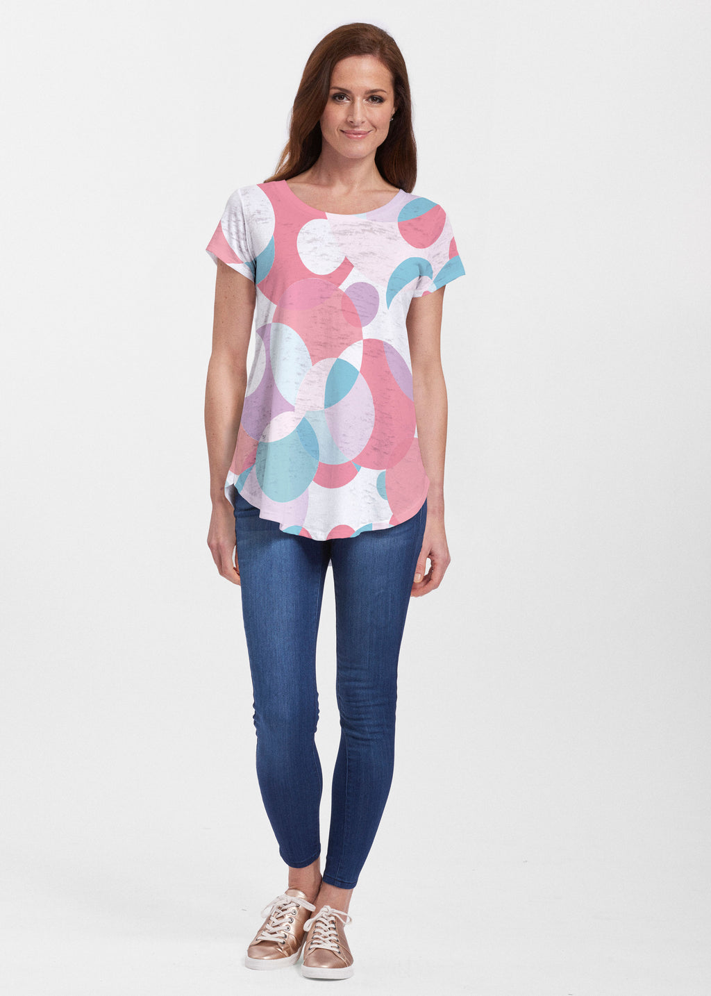 An effortlessly flattering tunic in our soft Signature burnout fabric featuring short sleeves and a scoop neck with a body that flows into a full, swinging shirttail hem.