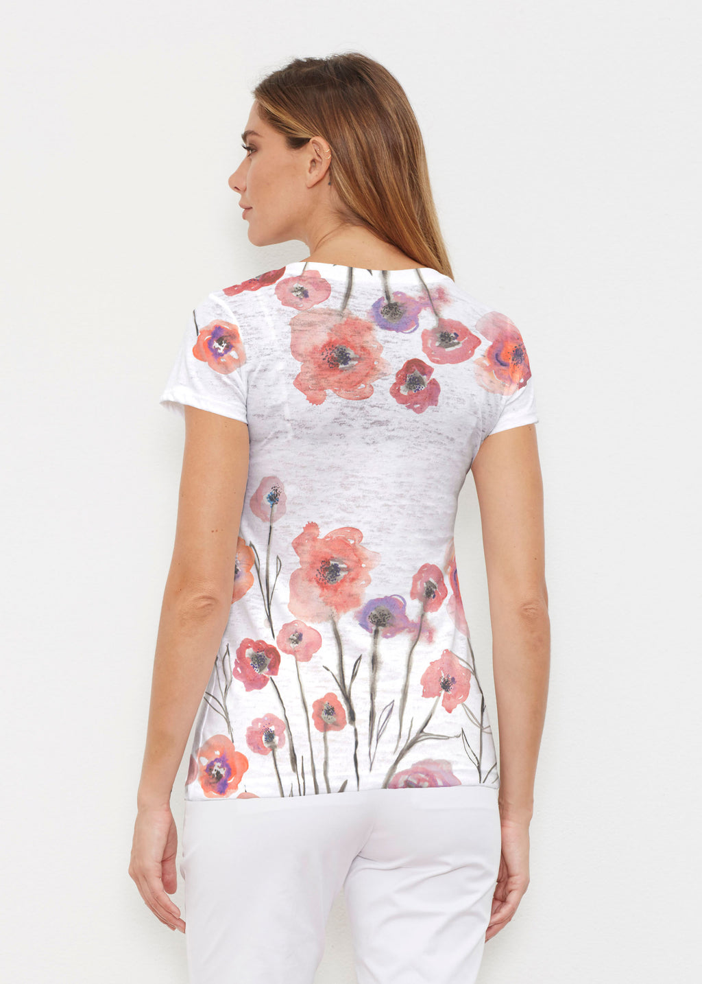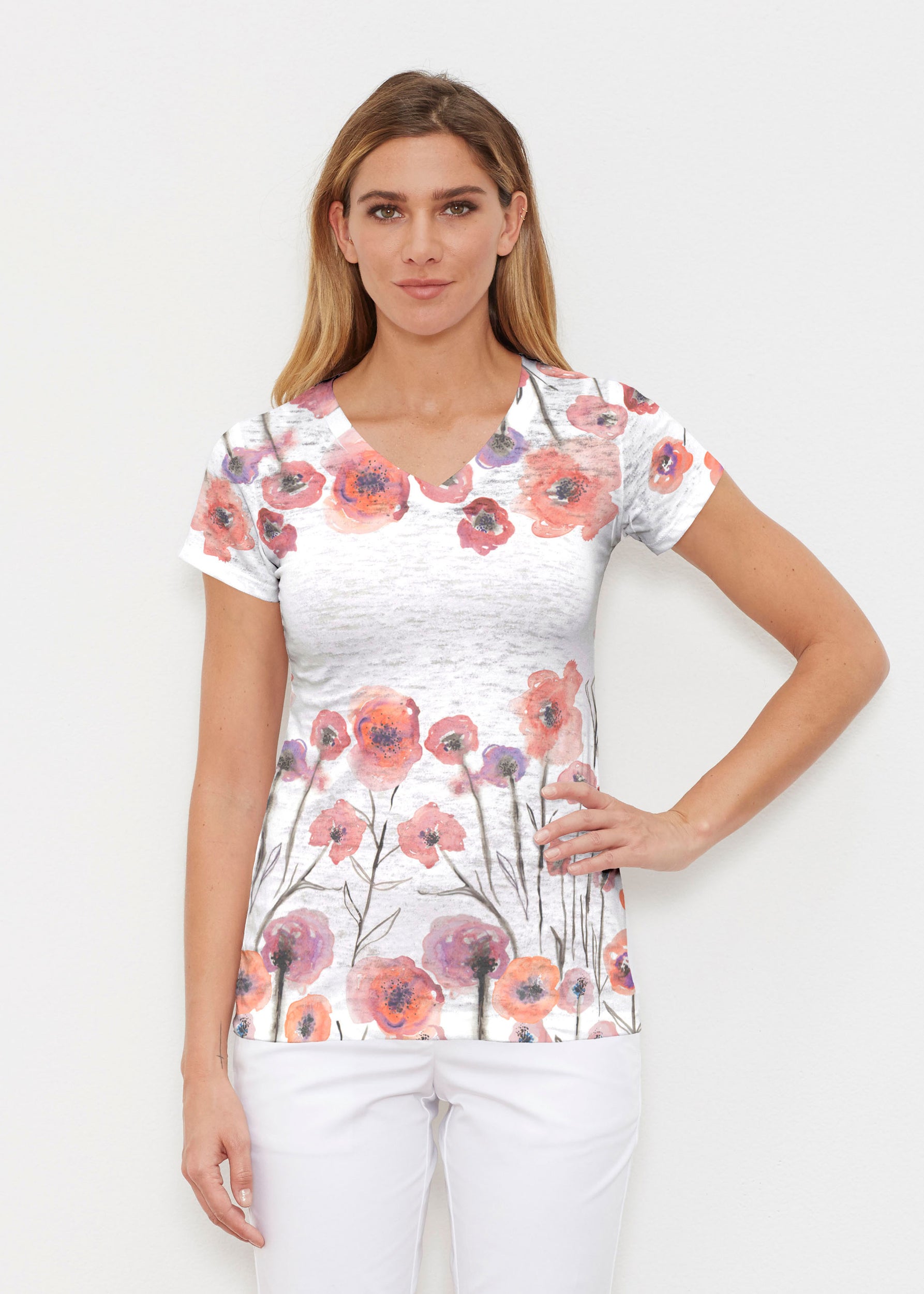 Created in soft, casual burn-out Signature blend, this tee features a subtle v-neck and cap sleeves.