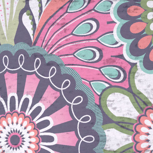 Playful, bold floral print in pink, orange, purple and aqua designed by Diane Kappa.