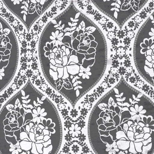 Vivid floral print in black and white with bold accents on the sleeves in pink, lime green and yellow designed by Diane Kappa.