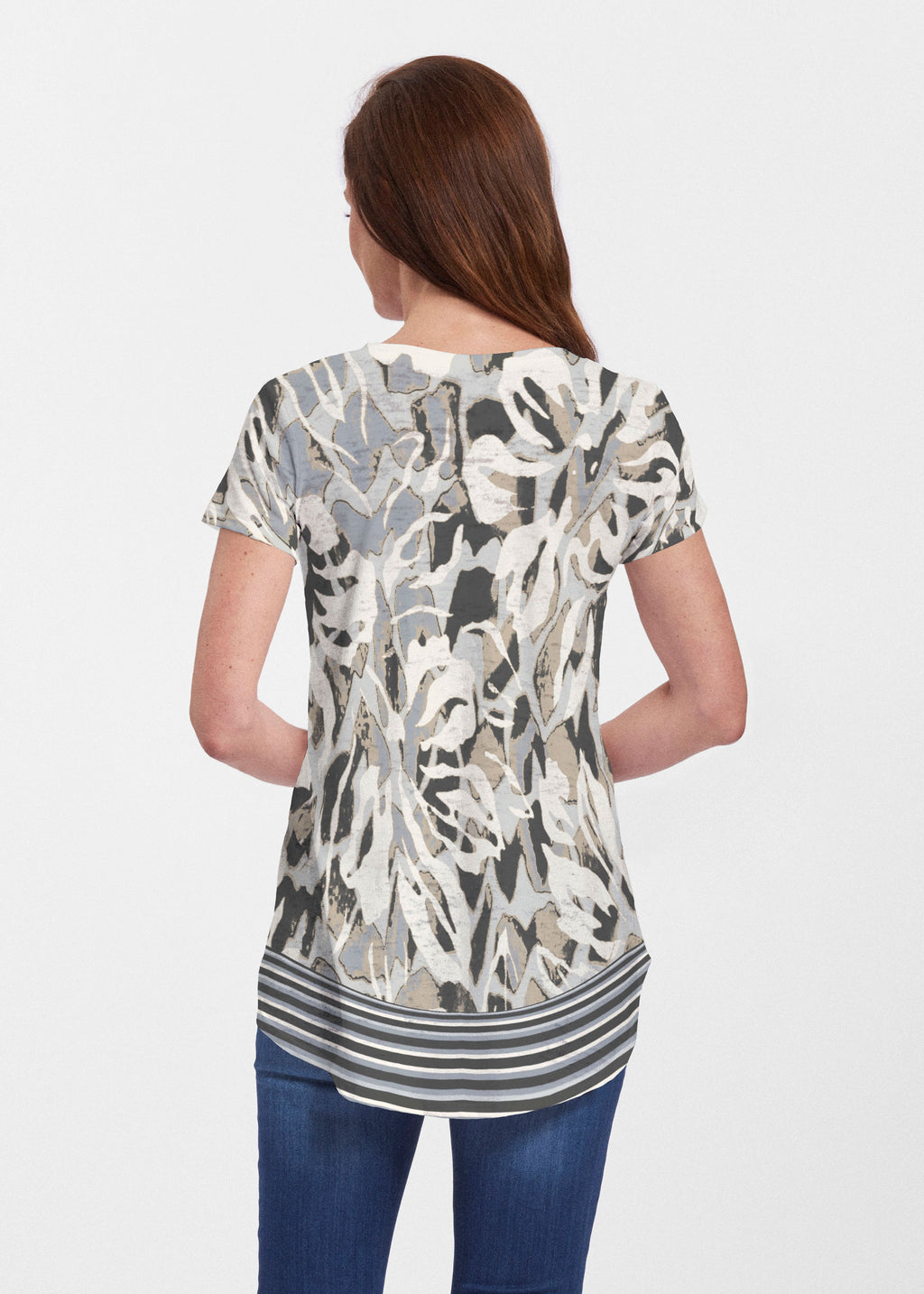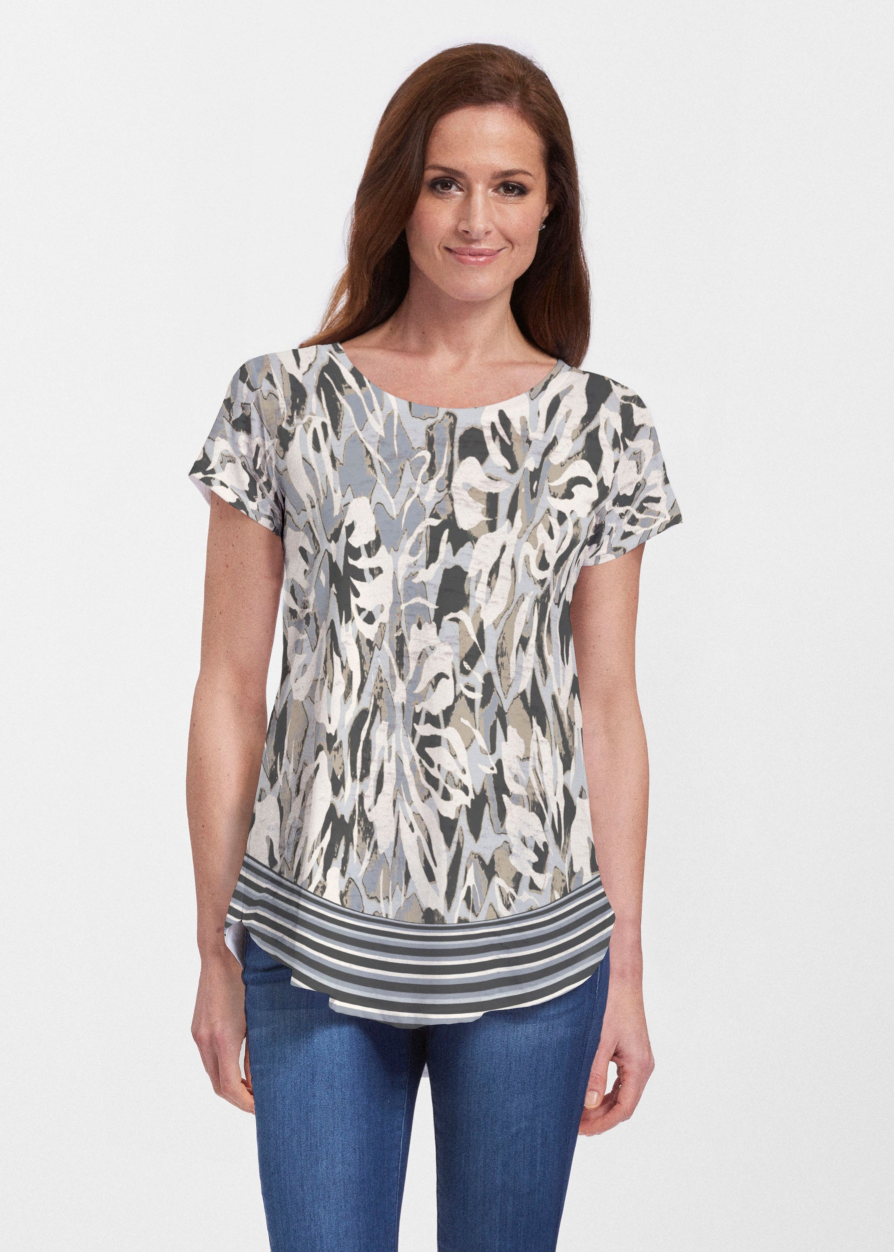 An effortlessly flattering tunic in our soft Signature burnout fabric featuring short sleeves and a scoop neck with a body that flows into a full, swinging shirttail hem.