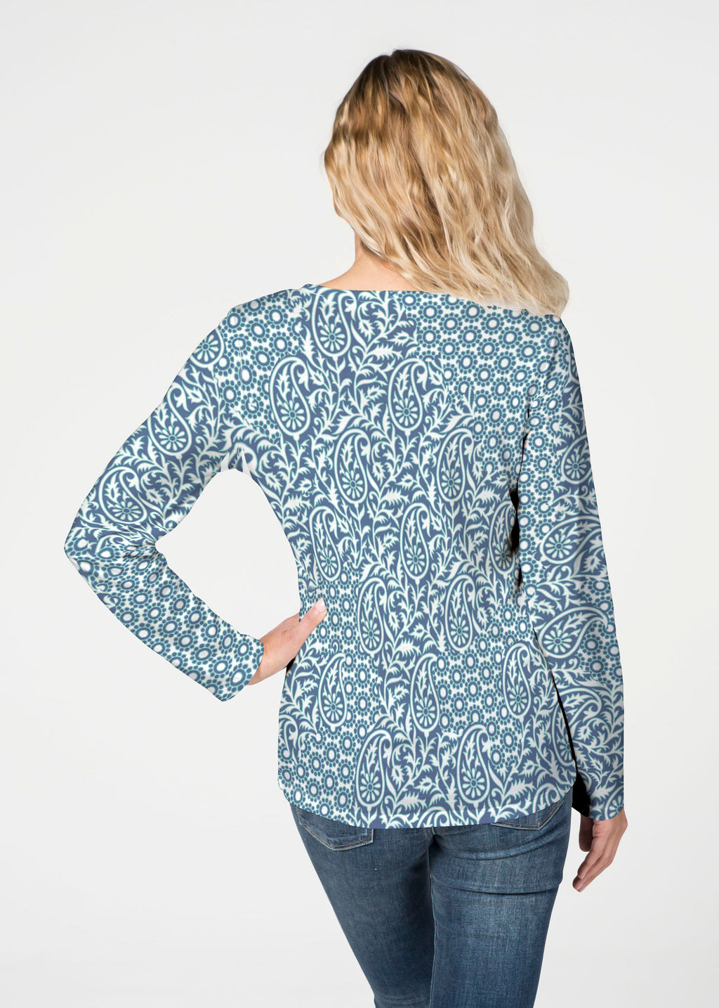 Our French Terry top is comfort and style all in one! Our French Terry top that features long sleeves, a V-neck and a more fitted silhouette that looks stylish in any print.