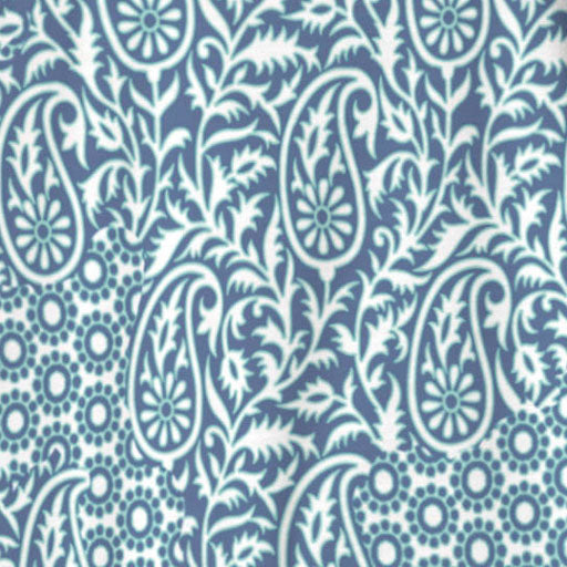 An intermix of our paisley and little sun's prints in white & navy with a green stroke.