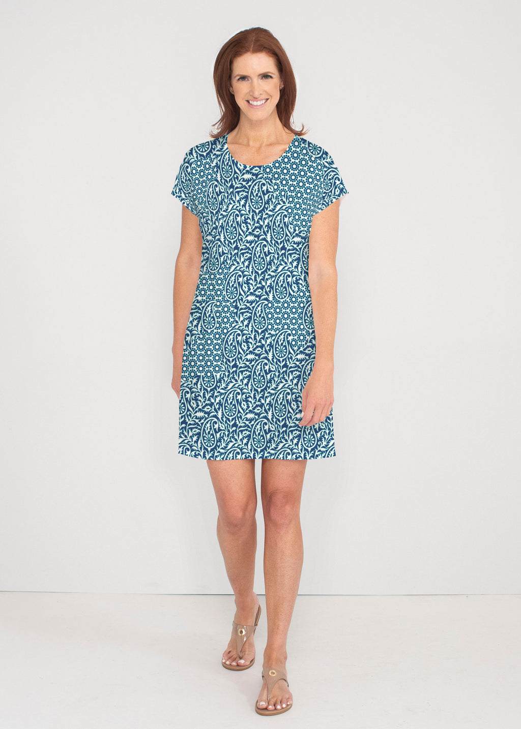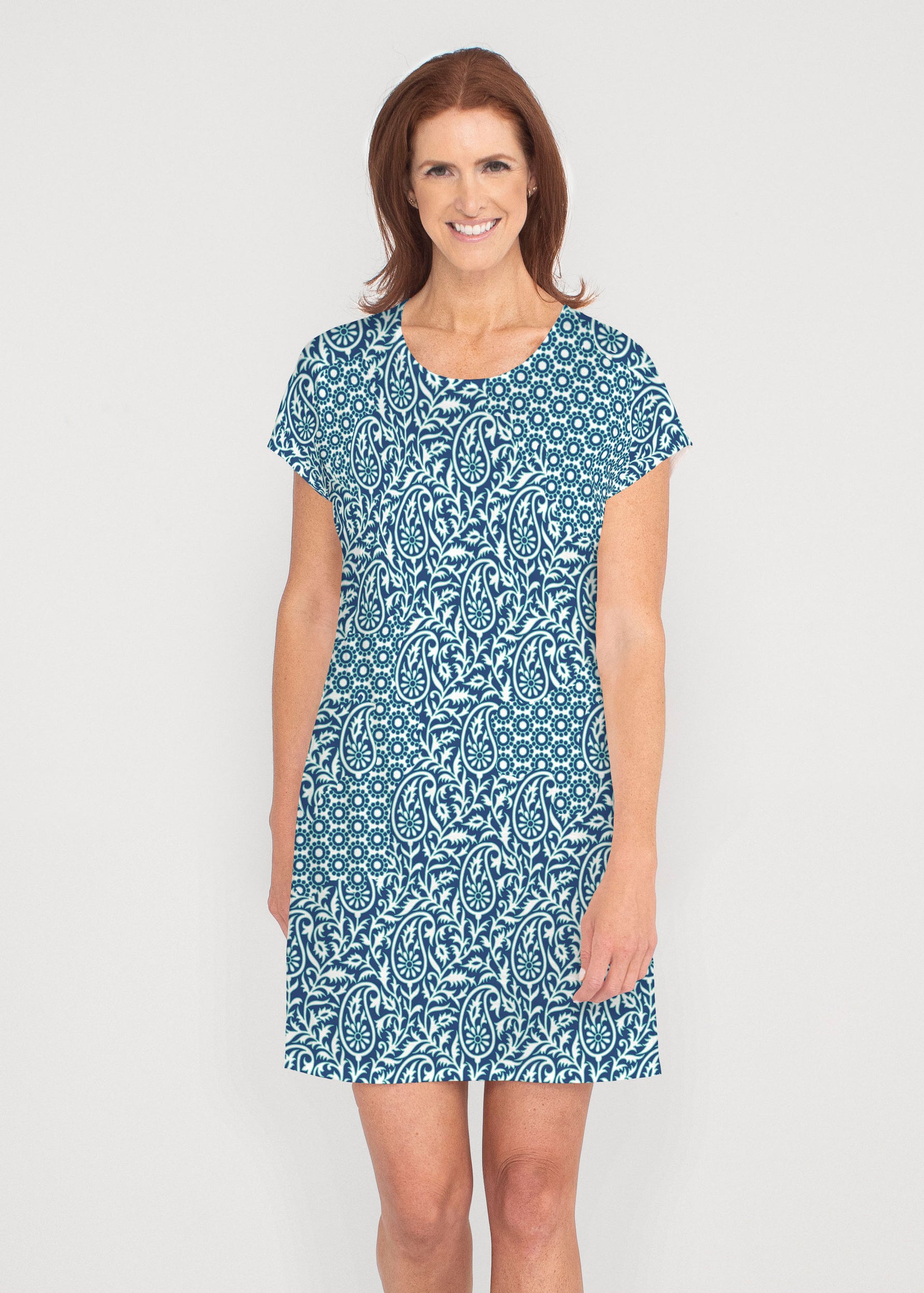 Our Lucy Tee Dress is effortless, versatile and soft to the touch -- perfect for all day style and comfort. A soft crew neckline, seamless sleeve and a relaxed shape made in our vibrant Lucy fabric ends above the knee.