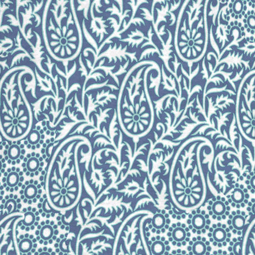 An intermix of our paisley and little sun's prints in white & navy with a green stroke.