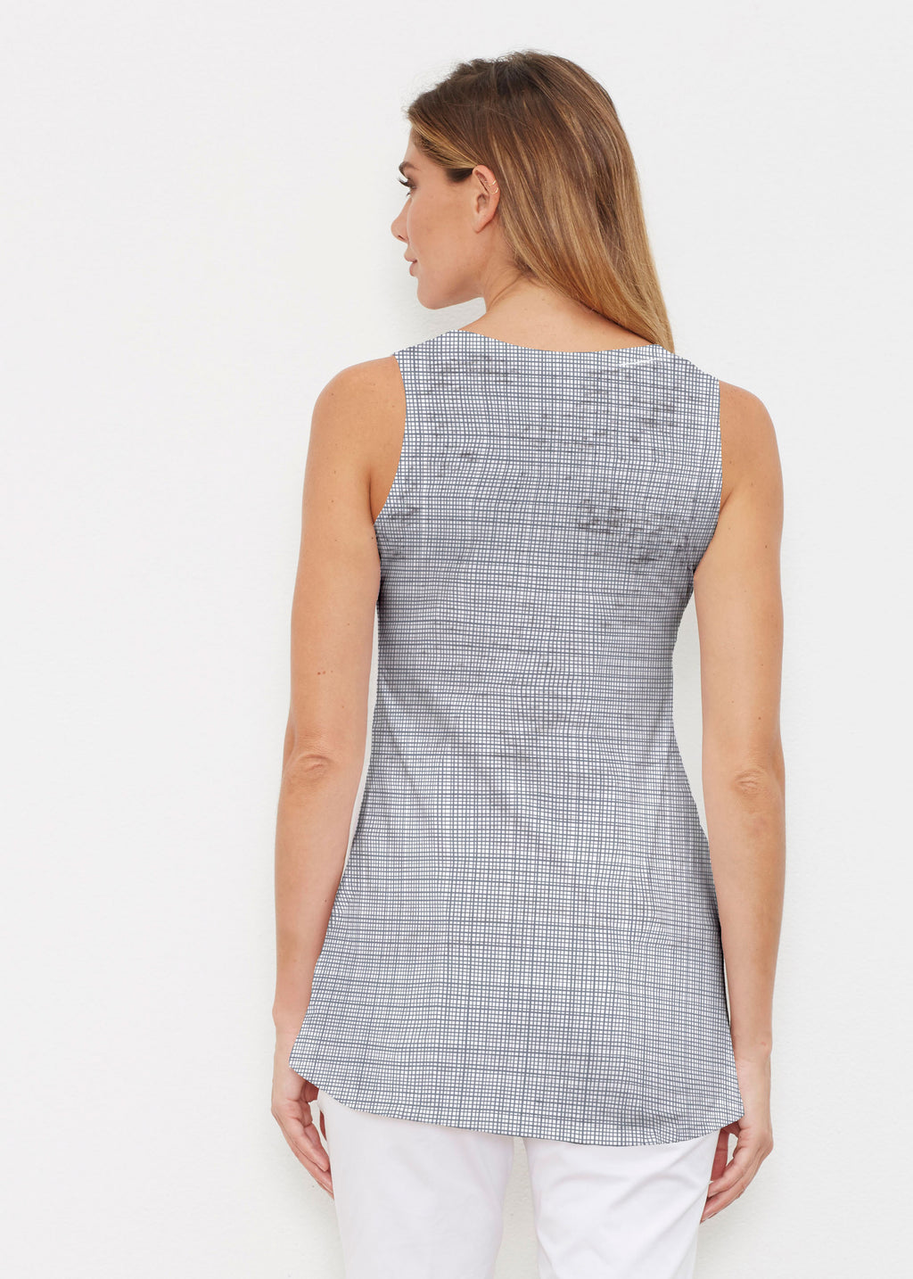 This tank is the perfect combination of an elegant shape with a sporty look. A high-low cascading hemline falls loosely over the hip in our Signature burnout fabric. No sleeves and a shallow scoop neckline give this tank its sporty vibe. -- Your one-of-a-kind garment is created using all-over soft garment sublimation printing. Selected designs are individually printed into your garment. Cotton/Polyester blend.