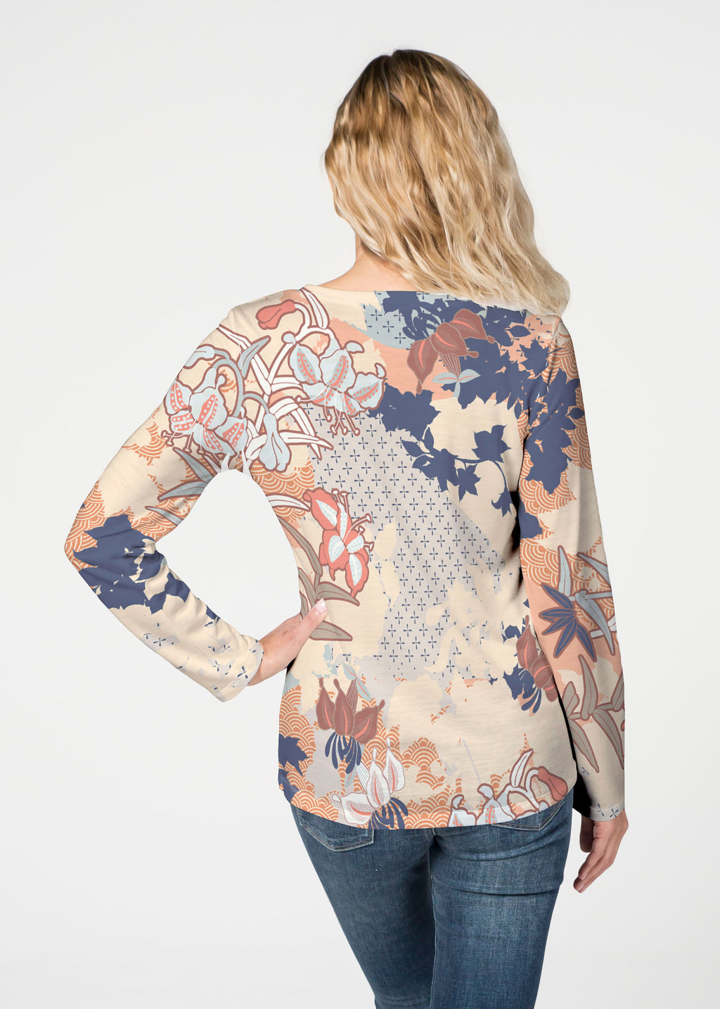Our French Terry top is comfort and style all in one! Our French Terry top that features long sleeves, a V-neck and a more fitted silhouette that looks stylish in any print.