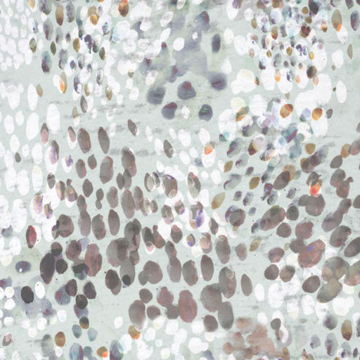 Delicate hand painted dots in shades of browns and whites on a soft mint canvas by Susan Werner.