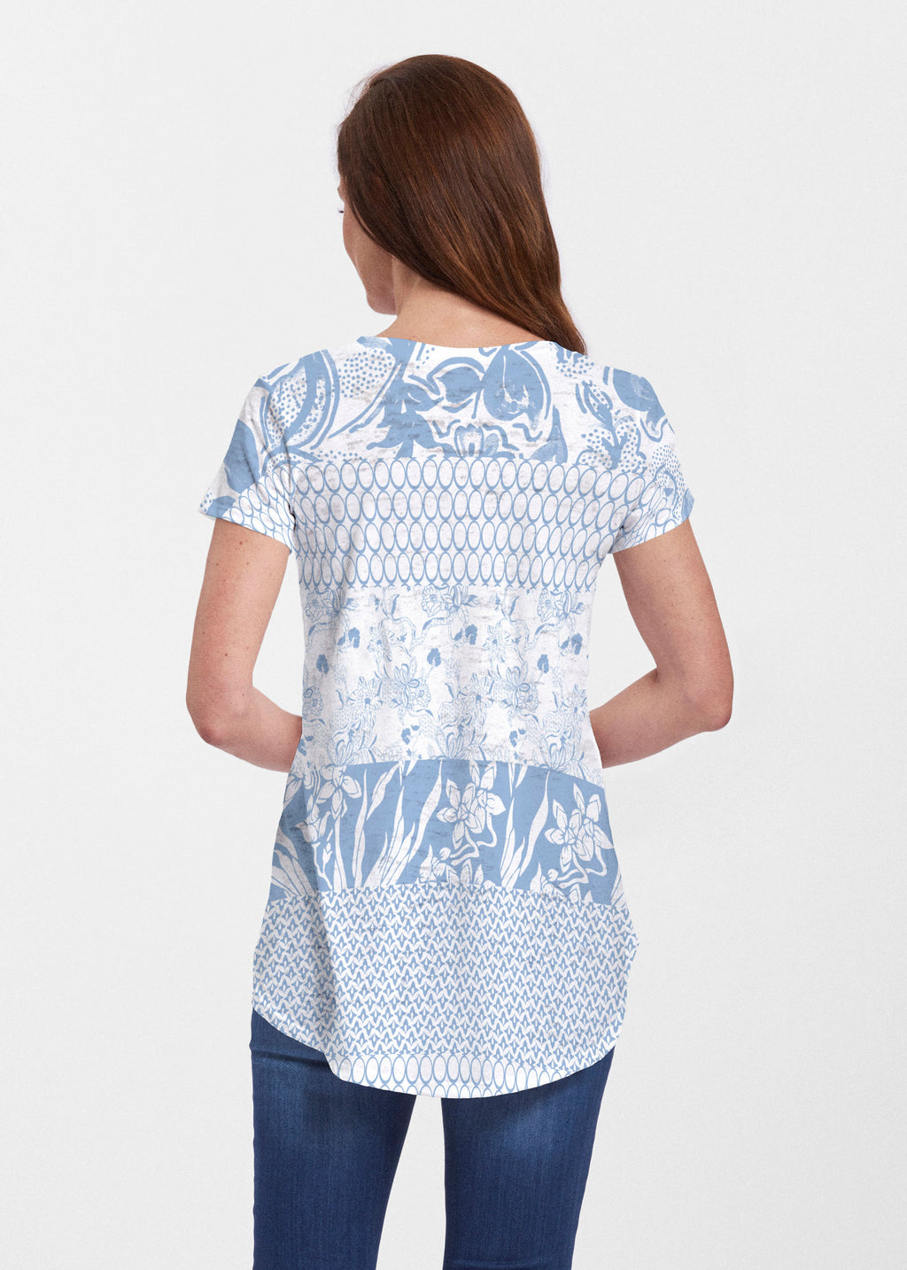 An effortlessly flattering tunic in our soft Signature burnout fabric featuring short sleeves and a scoop neck with a body that flows into a full, swinging shirttail hem.