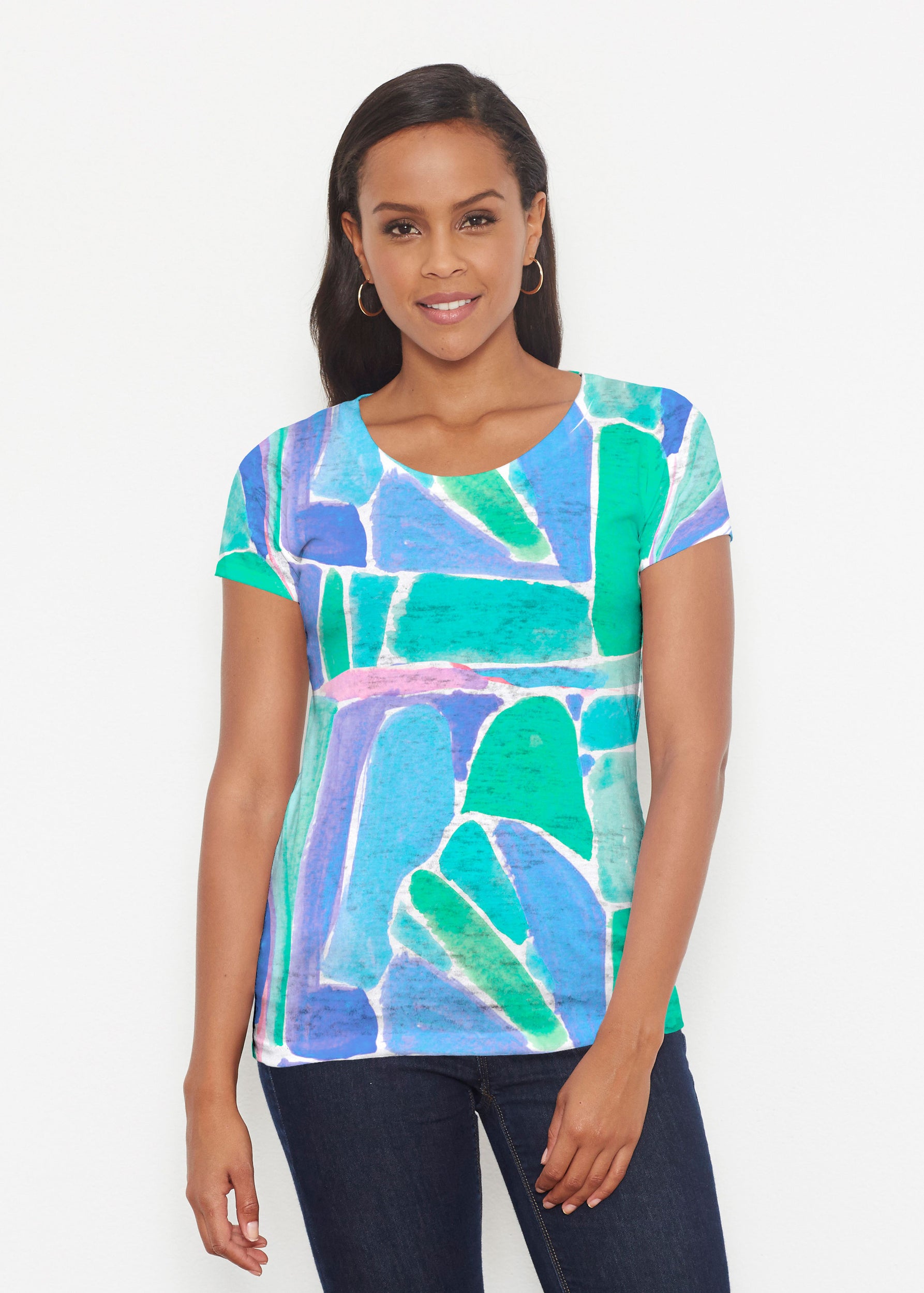 Our scoop neck tee in our casual and supremely soft Signature burnout blend is a best-selling collectible! A relaxed fit falls at the hip.