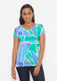 The lime, blue, and pink colors create a vibrant and eye-catching palette that evokes a sense of playfulness and spontaneity. The bold brush strokes add a dynamic and expressive quality to the design, mimicking the organic shapes and textures found in cobblestones.