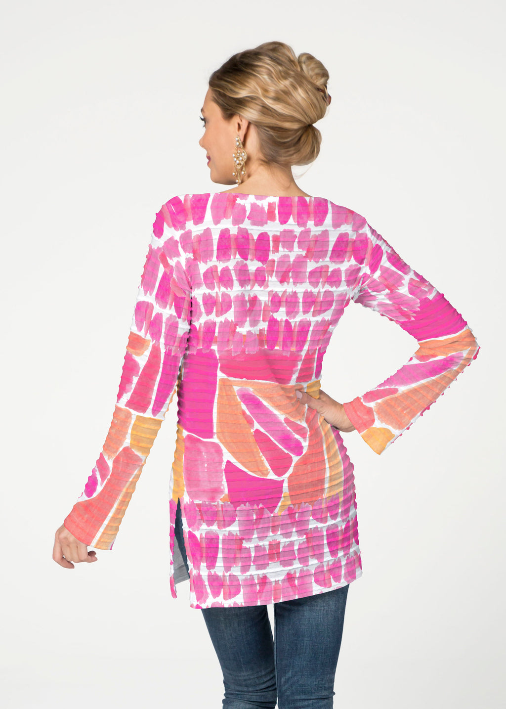 The Banded Boatneck Tunic has the soft pleated texture of our Banded fabric, making this a sophisticated, casual year round piece. A forgiving fit, side vents, with a relaxed full length sleeve combine for a flattering look. The hemline flows gently over the hip.