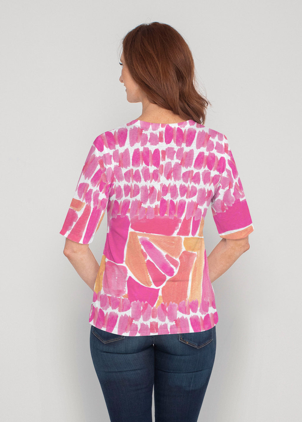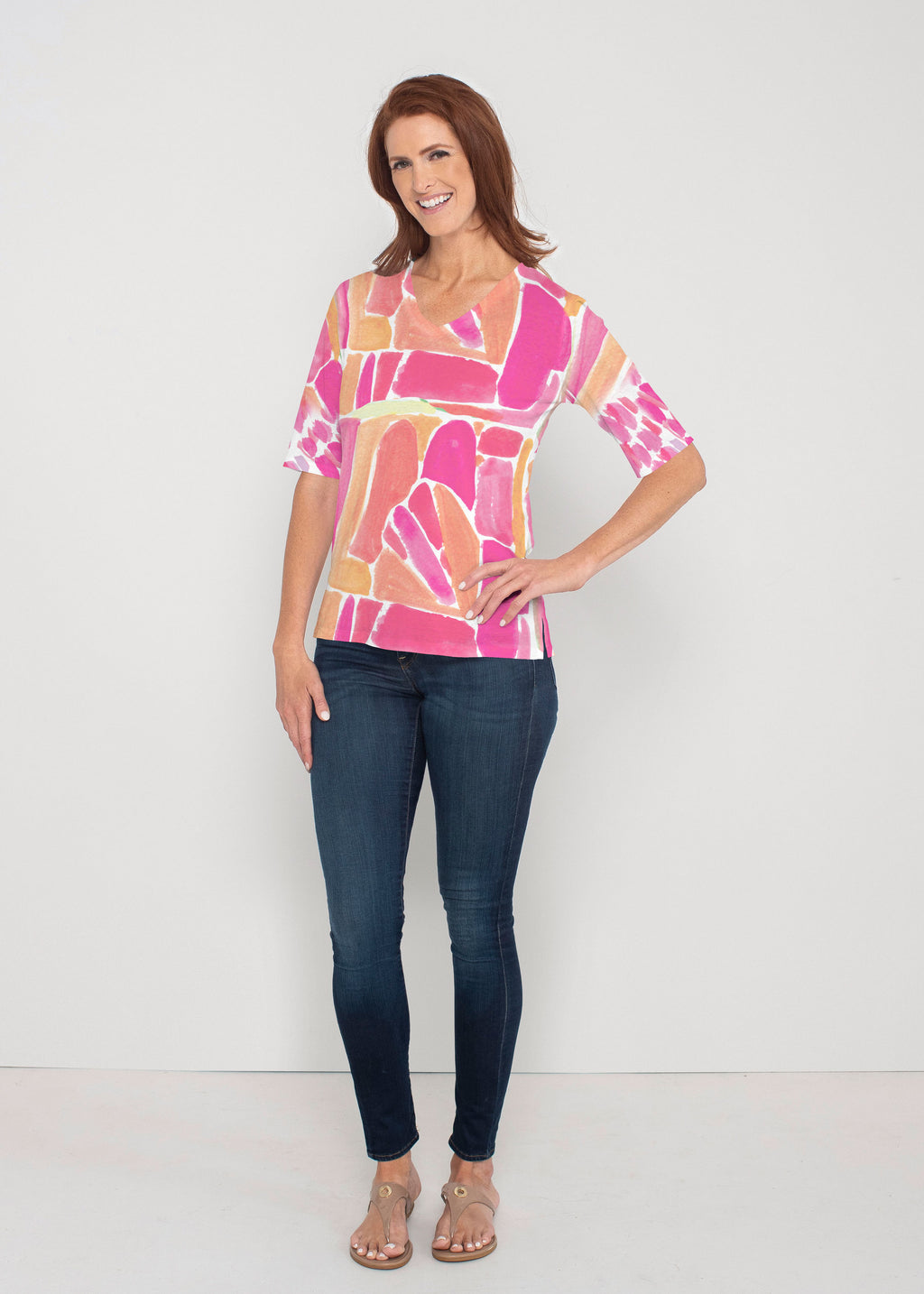 Pebble Walk Orange (17261) ~ Signature Elbow Sleeve V-Neck Top