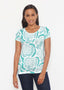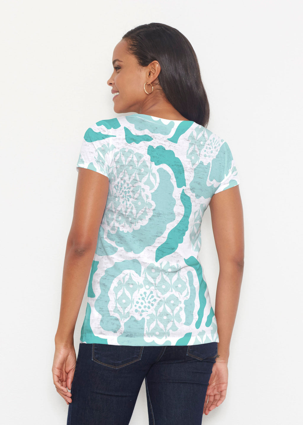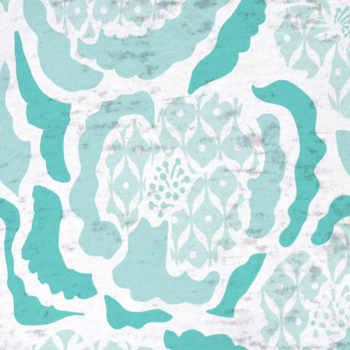 A refreshing Aqua and white geo design of peonies.