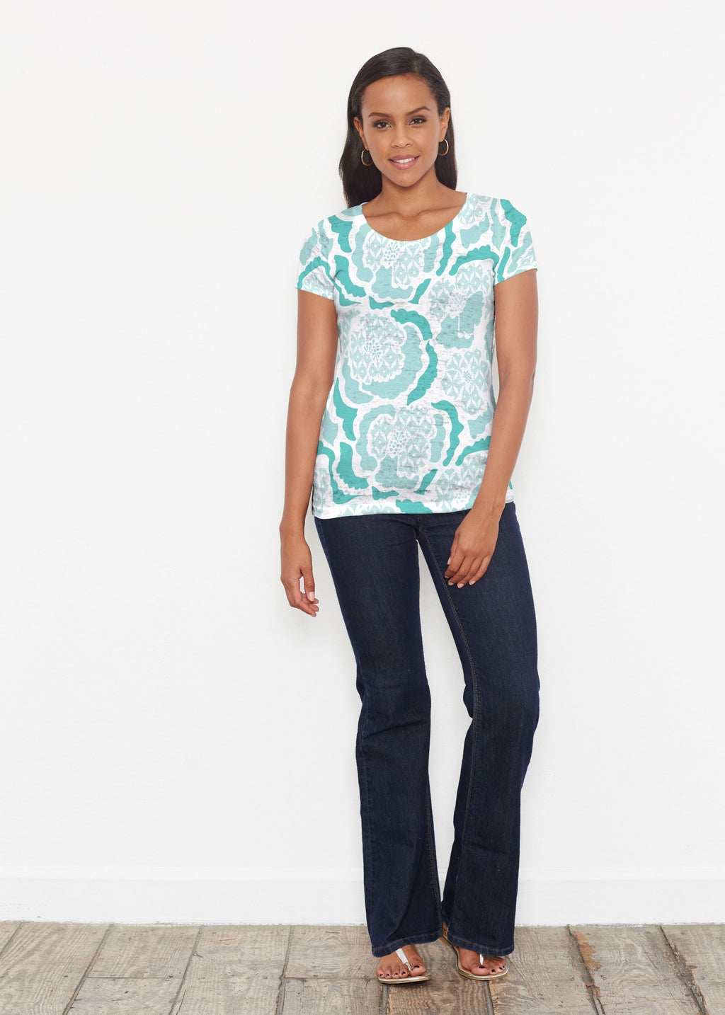 Our scoop neck tee in our casual and supremely soft Signature burnout blend is a best-selling collectible! A relaxed fit falls at the hip.
