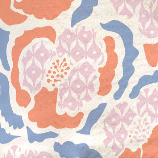 A pink and white geo design of peonies amongst festive colors of royal blue and orange.
