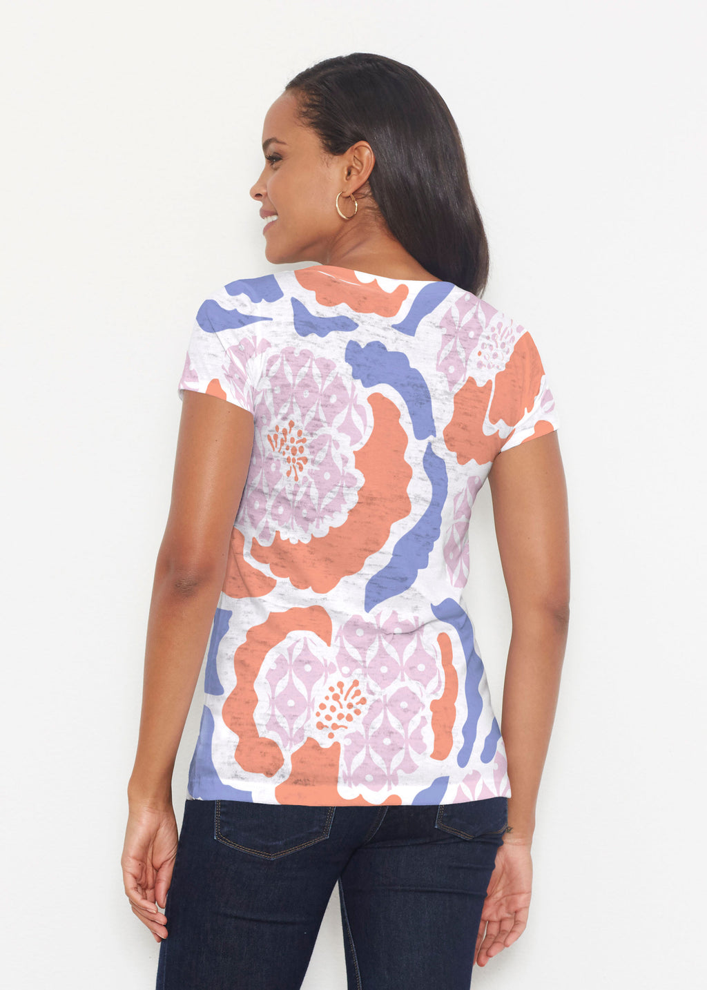 Our scoop neck tee in our casual and supremely soft Signature burnout blend is a best-selling collectible! A relaxed fit falls at the hip.