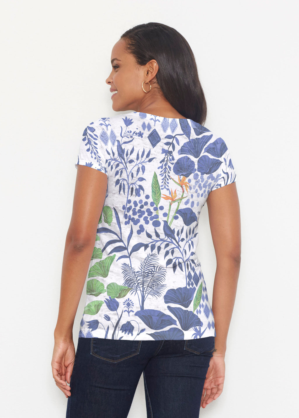 Our scoop neck tee in our casual and supremely soft Signature burnout blend is a best-selling collectible! A relaxed fit falls at the hip.