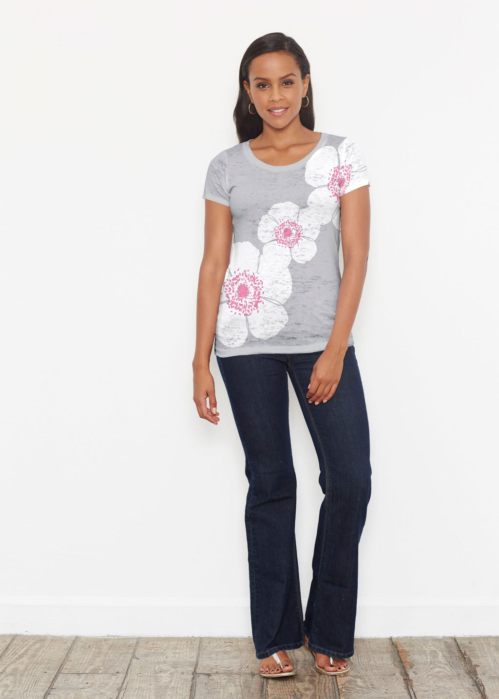 Our scoop neck tee in our casual and supremely soft Signature burnout blend is a best-selling collectible! A relaxed fit falls at the hip.