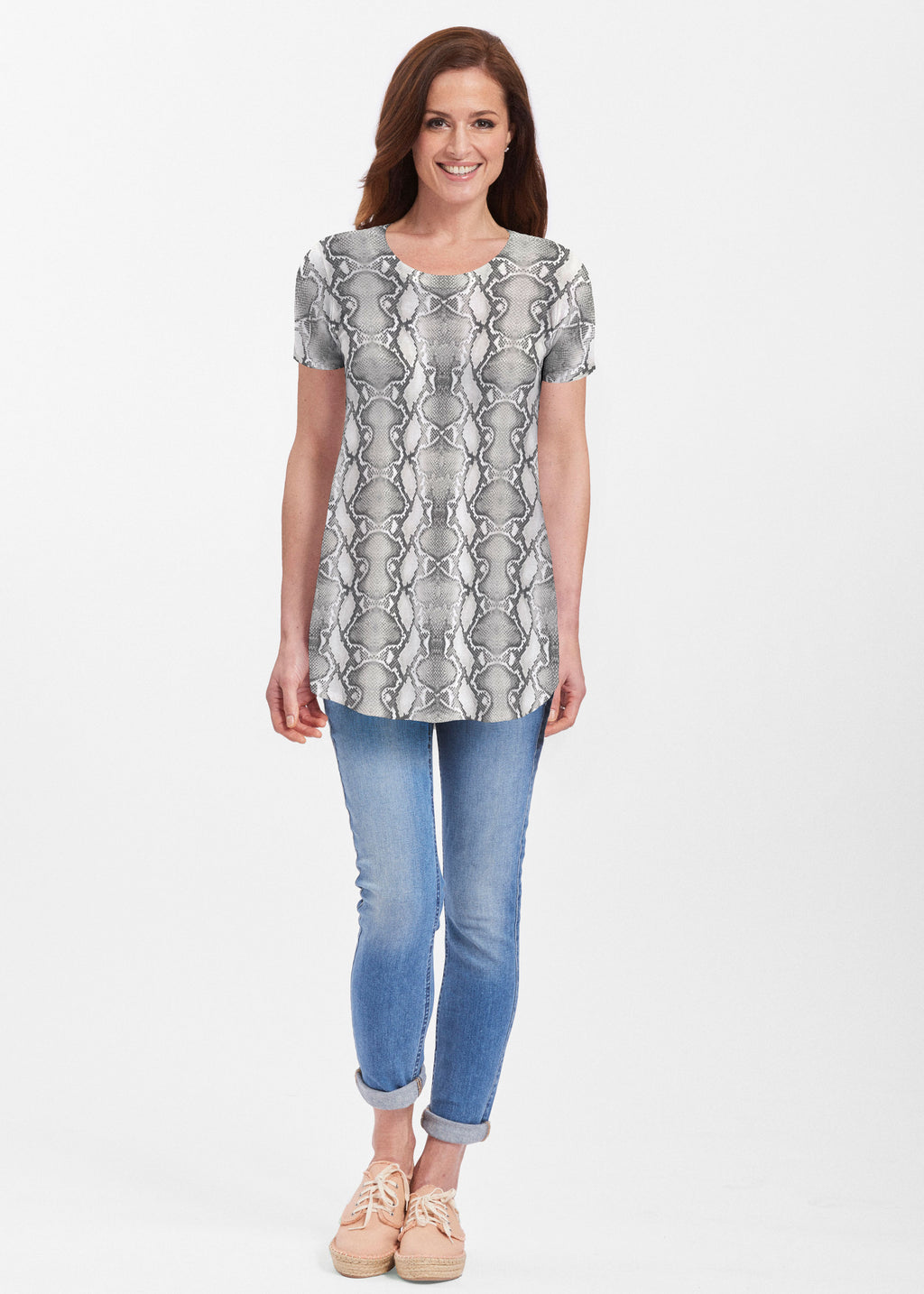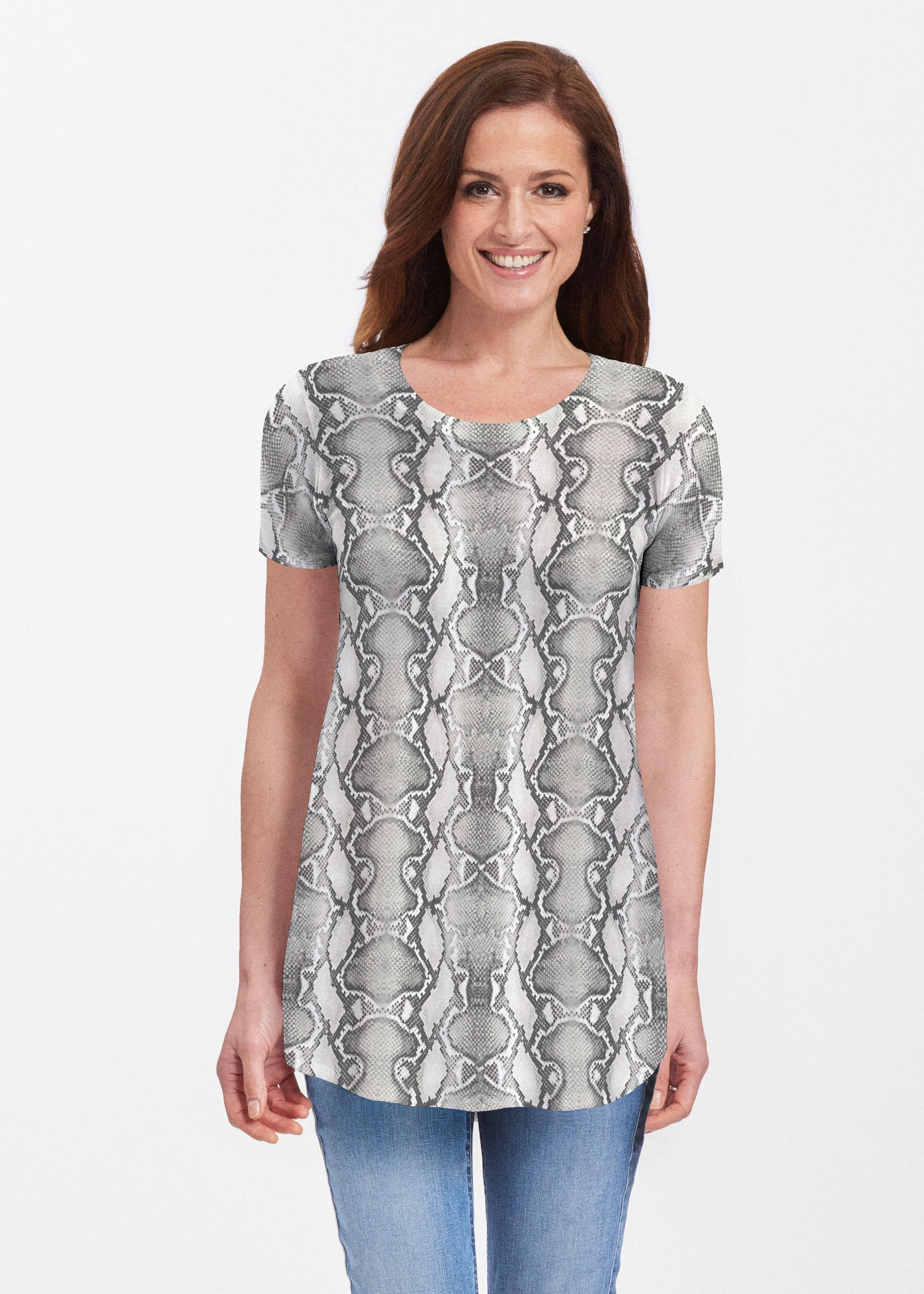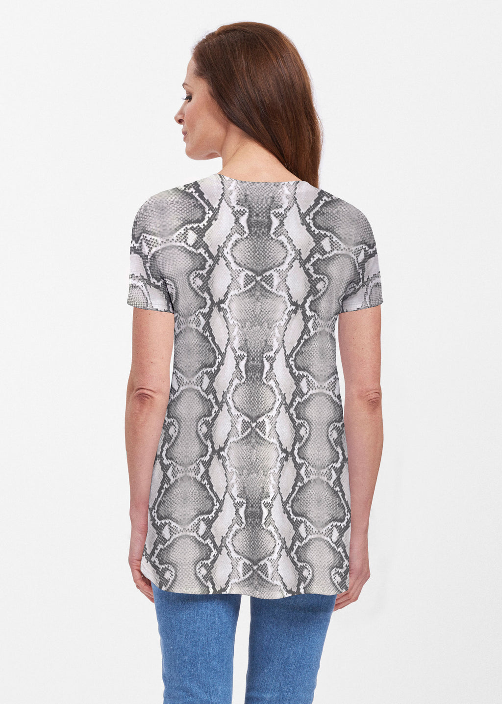 So on trend right now, let this silver python print slither into your wardrobe this season. Designed by Susan Werner.