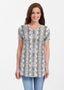 Our soft and feminine short sleeve silhouette tunic is sure to flatter any figure. Made in our Butterknit fabic that flows into a relaxed curved hem that is slightly longer in the back with subtle side slits.