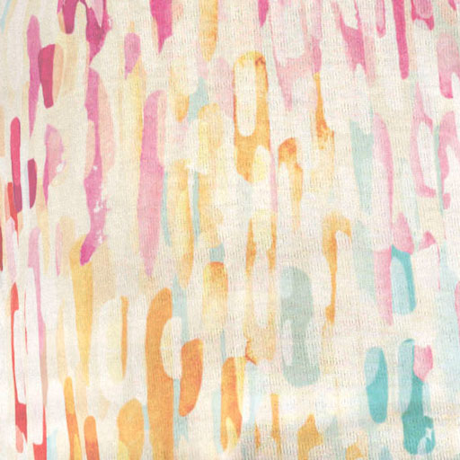 Preppy meets abstract with this cool combination of colorful exaggerated raindrops with a miniature geometric in pinks and aquas by Susan Werner .
