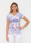 Created in soft, casual burn-out Signature blend, this tee features a subtle v-neck and cap sleeves.