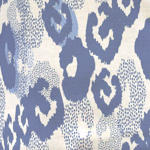 A striking and playful print of mottled, abstract geometrics in shades of blue designed by Susan Werner.