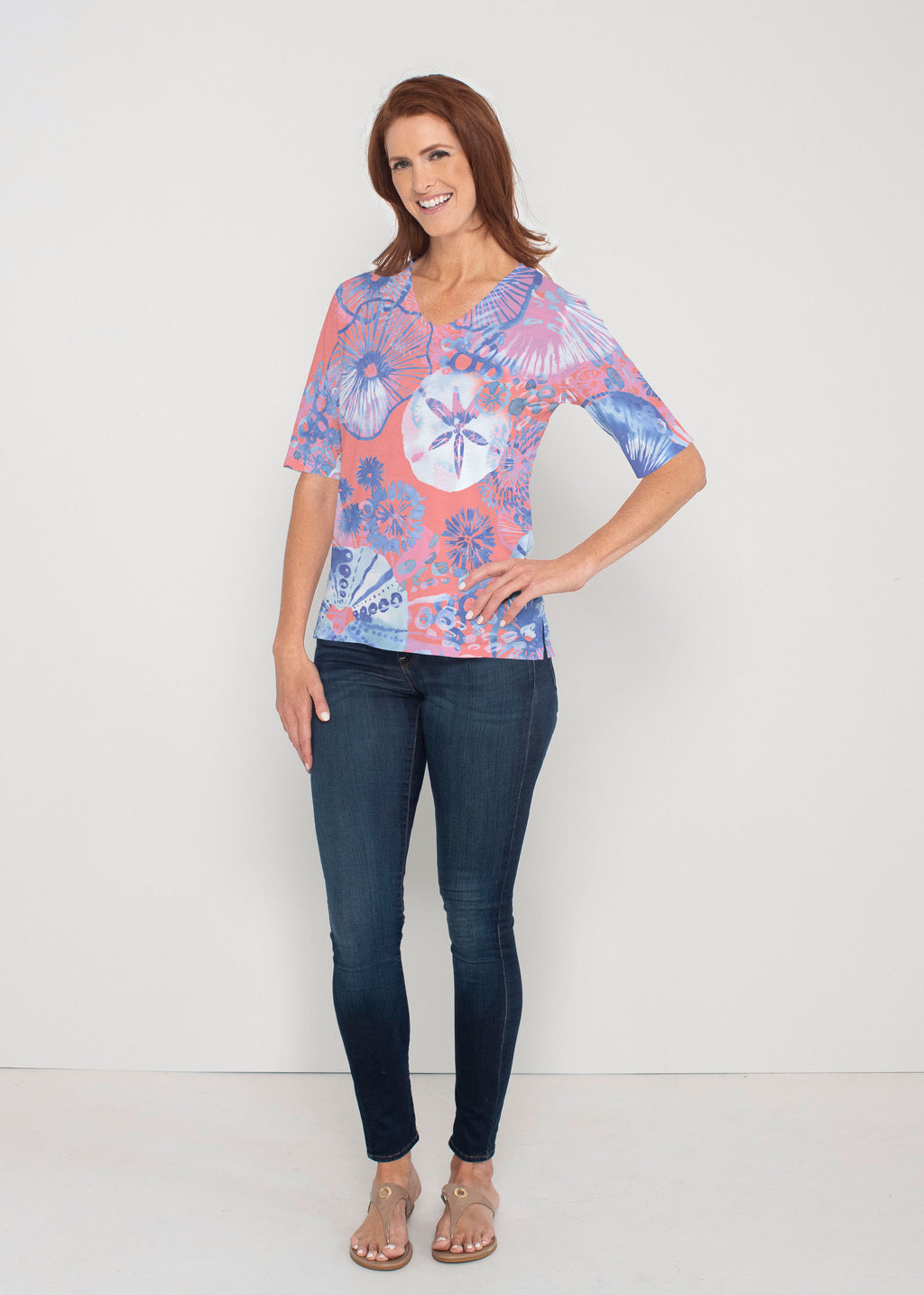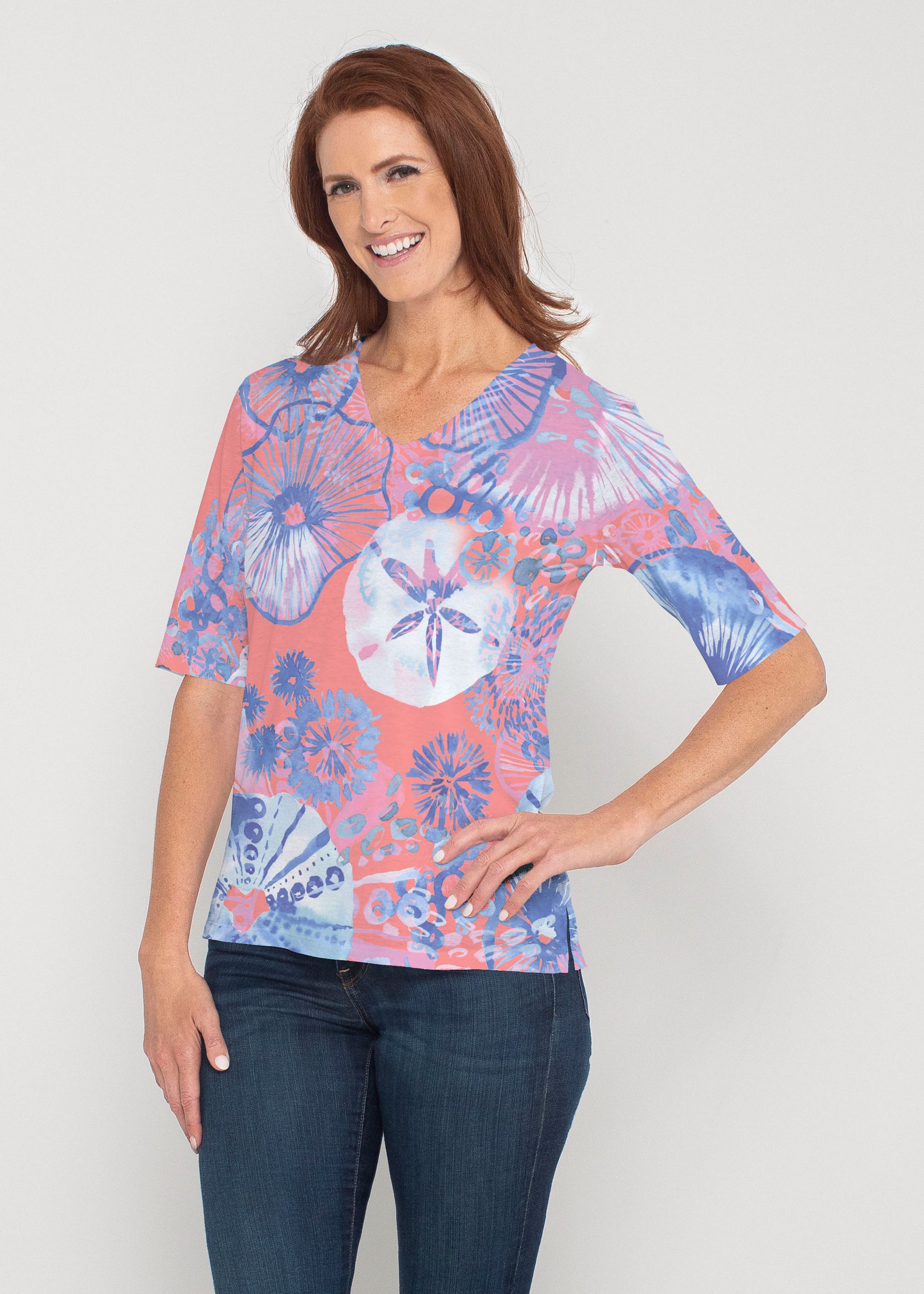 This Signature V-neck top combines the perfect for all day comfort with a relaxed fit and just the right sleeve length for stylish fun. Great on its own or the perfect layering piece.