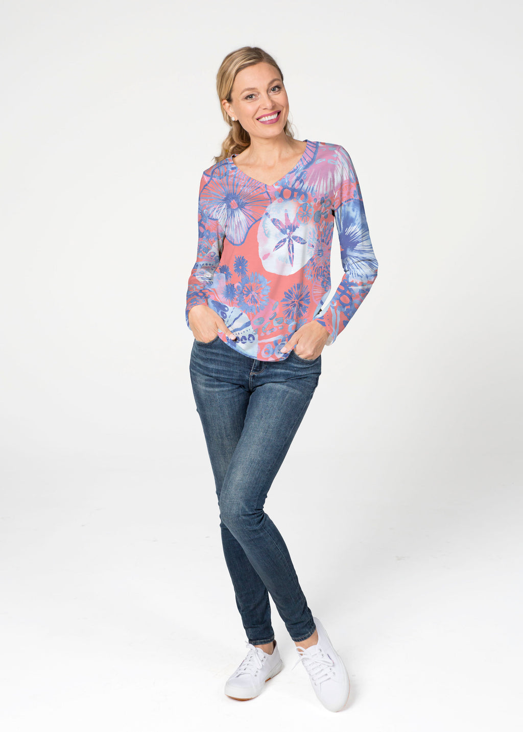 Our French Terry top is comfort and style all in one! Our French Terry top that features long sleeves, a V-neck and a more fitted silhouette that looks stylish in any print.