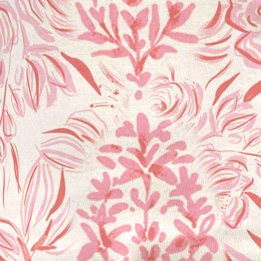 A feminine display of a summer garden in a soft palette of rosey scarlett and pink.