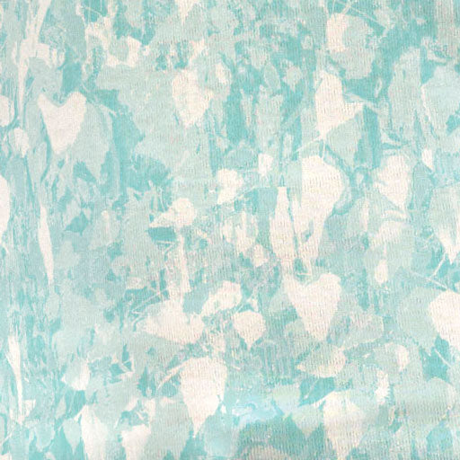 A beautiful graphic floral print with faded leaf textures in shades of aqua and white designed by Susan Werner.