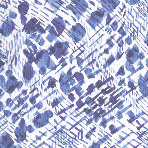 A splash of royal blue spotty leopard on a woven royal blue and white background.