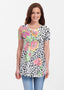 Our soft and feminine short sleeve silhouette tunic is sure to flatter any figure. Made in our Butterknit fabic that flows into a relaxed curved hem that is slightly longer in the back with subtle side slits.