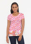 Squiggles Pink (20341) ~ Banded 3/4 Bell-Sleeve V-Neck Tunic
