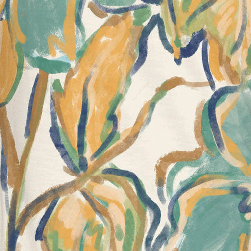 A creamy backdrop of large floral blooms in Fall colors of navy, green & gold.