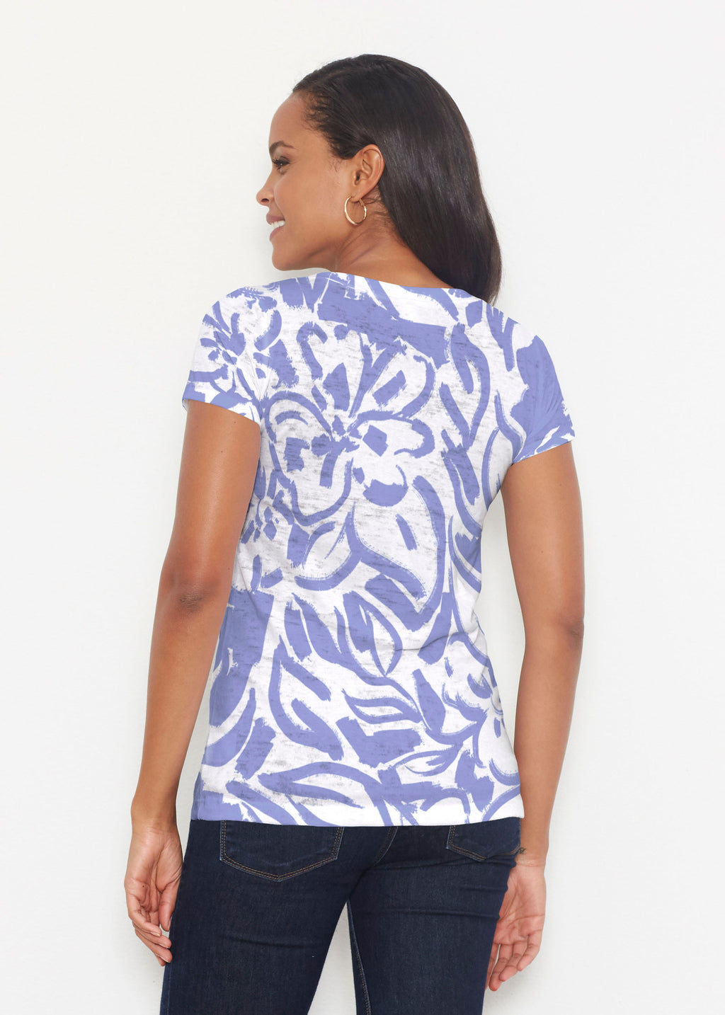 Our scoop neck tee in our casual and supremely soft Signature burnout blend is a best-selling collectible! A relaxed fit falls at the hip.