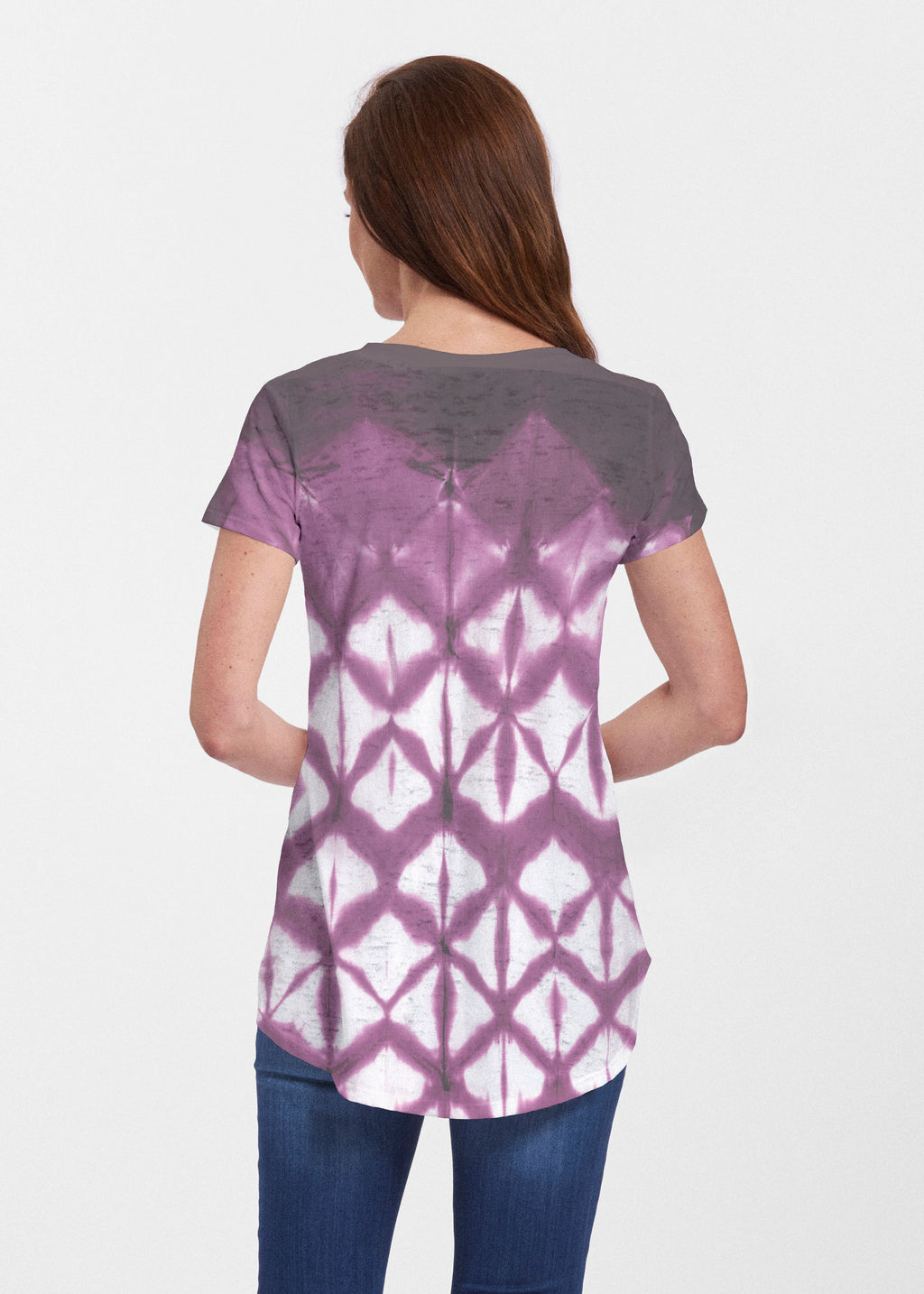 An effortlessly flattering tunic in our soft Signature burnout fabric featuring short sleeves and a scoop neck with a body that flows into a full, swinging shirttail hem.