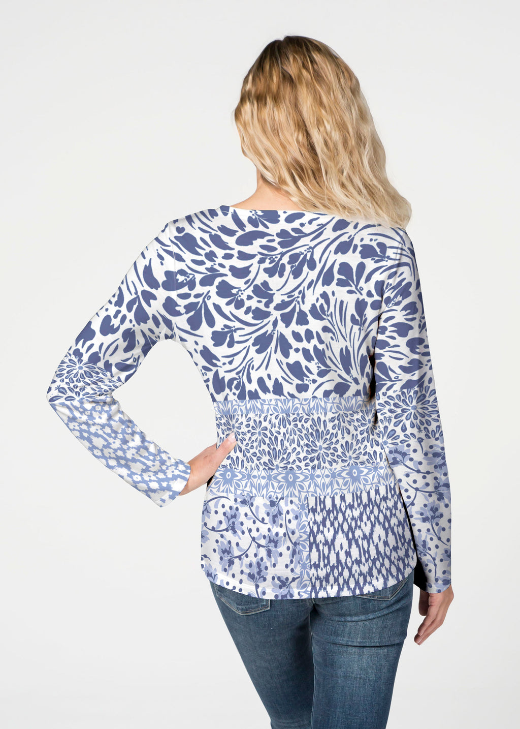 Our French Terry top is comfort and style all in one! Our French Terry top that features long sleeves, a V-neck and a more fitted silhouette that looks stylish in any print.