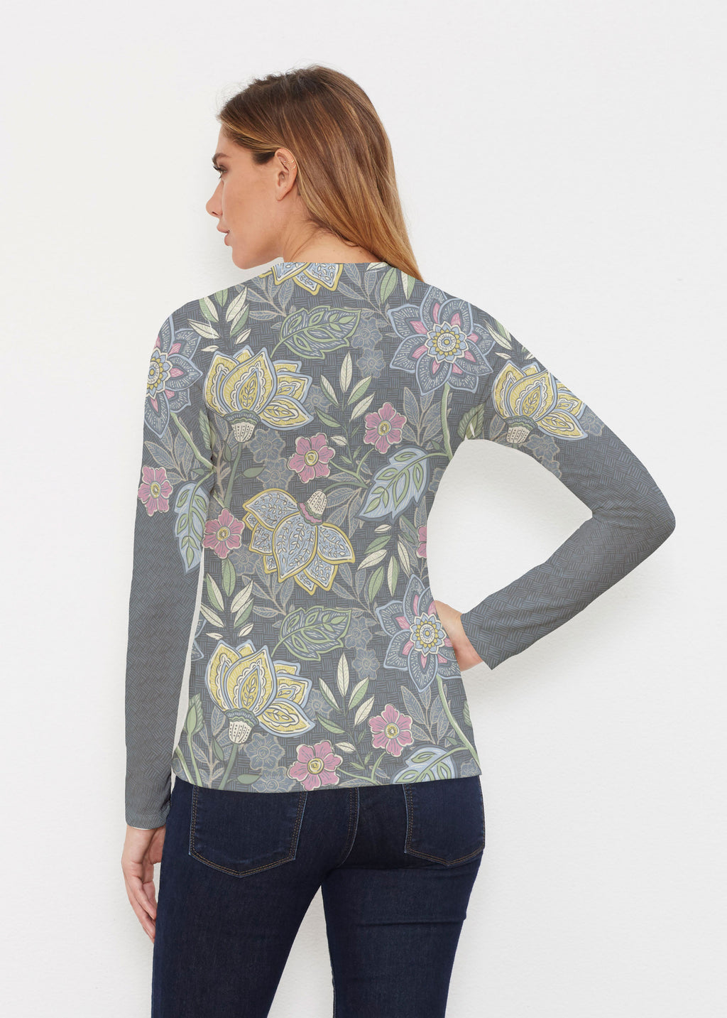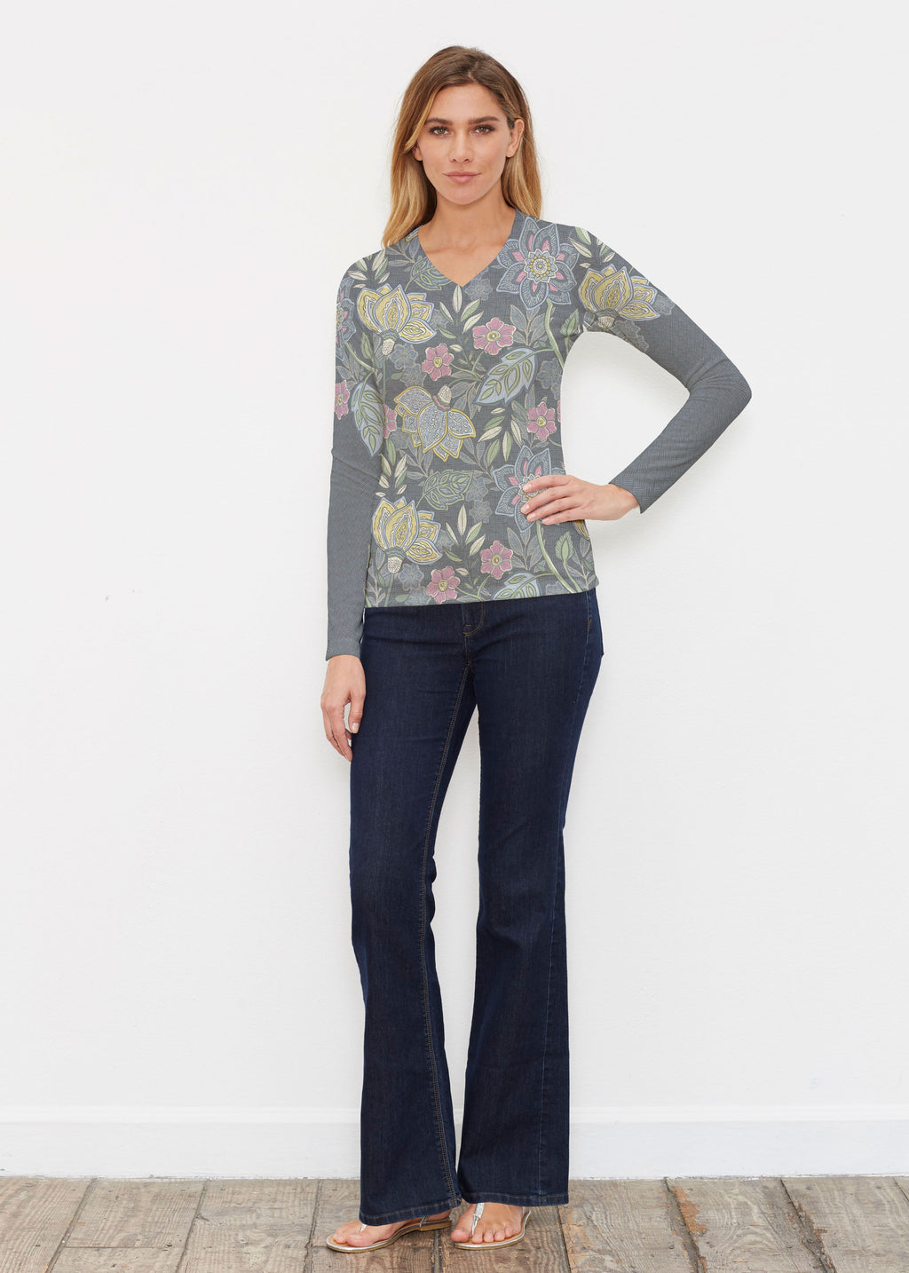 Polished and elegant, this top is a sophisticated option for chillier temps. Our soft and cozy Butterknit fabric, long sleeves, fitted shape, and v- neck make the perfect comfortable and stylish look in your favorite print.