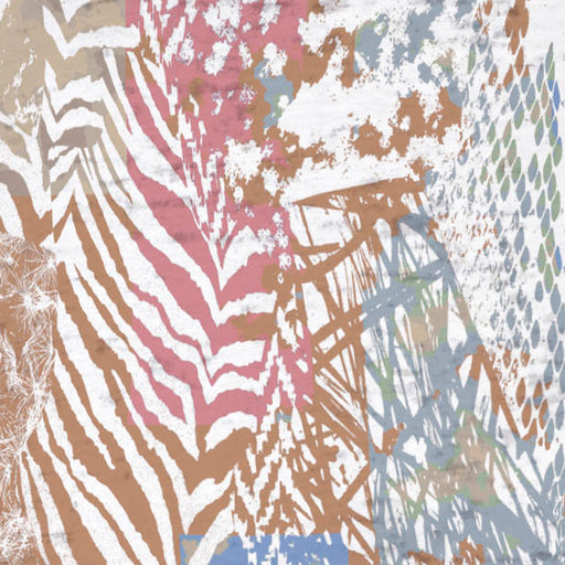A stunning and sophisticated mixed animal print in beautiful neutral colors with a pop of blue and pink. Designed by Susan Werner.